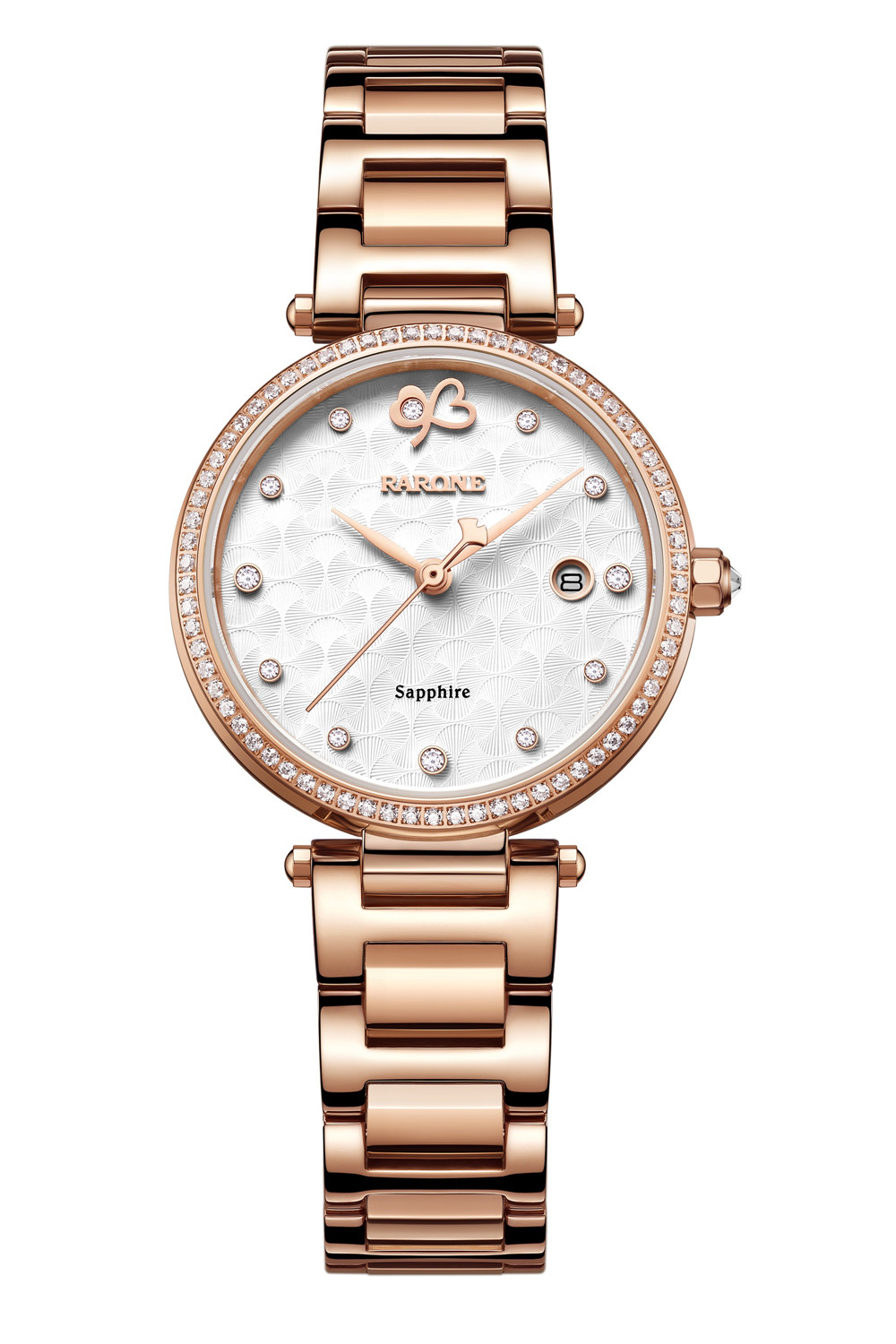 女神董潔優(yōu)雅、內(nèi)斂沉靜的氣質(zhì)與新品銀杏款不謀而合,銀杏沒有花朵,僅僅因?yàn)槿~子的春秋兩季的美態(tài)傾倒眾生。雷諾表夜色系列銀杏款以銀杏葉作為設(shè)計(jì)元素,演繹分秒更替的時(shí)光軌跡。浪漫銀杏葉裝飾秒針的頭部,銀杏葉心形的輪廓和絲狀的肌理鋪滿表盤,12點(diǎn)位以兩片銀杏葉交織在一起,寓意兩顆相愛的心交融在一起。在腕表底蓋上,一對(duì)愛人依偎而坐,意義雋永悠長(zhǎng),表達(dá)永恒之愛的主題。