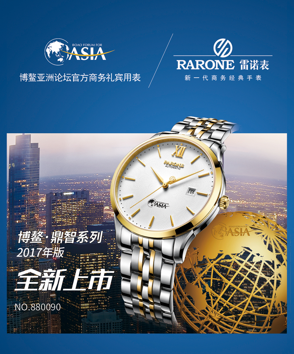 2017年3月23日-26日,博鰲亞洲論壇2017年會(huì)如期在海南博鰲鎮(zhèn)舉行,來(lái)自全球各國(guó)政府、工商界和學(xué)術(shù)界的領(lǐng)袖人物進(jìn)行為期四天的高端對(duì)話(huà),通過(guò)博鰲亞洲論壇年會(huì)為更具包容性的全球化出謀劃策。今年是雷諾表攜手博鰲論壇,成為博鰲亞洲論壇官方商務(wù)禮賓用表的第八年,八年之交,共勉共進(jìn)!雷諾表持續(xù)以博鰲·鼎智系列商務(wù)腕表見(jiàn)證商界精英馳騁博鰲的風(fēng)采。