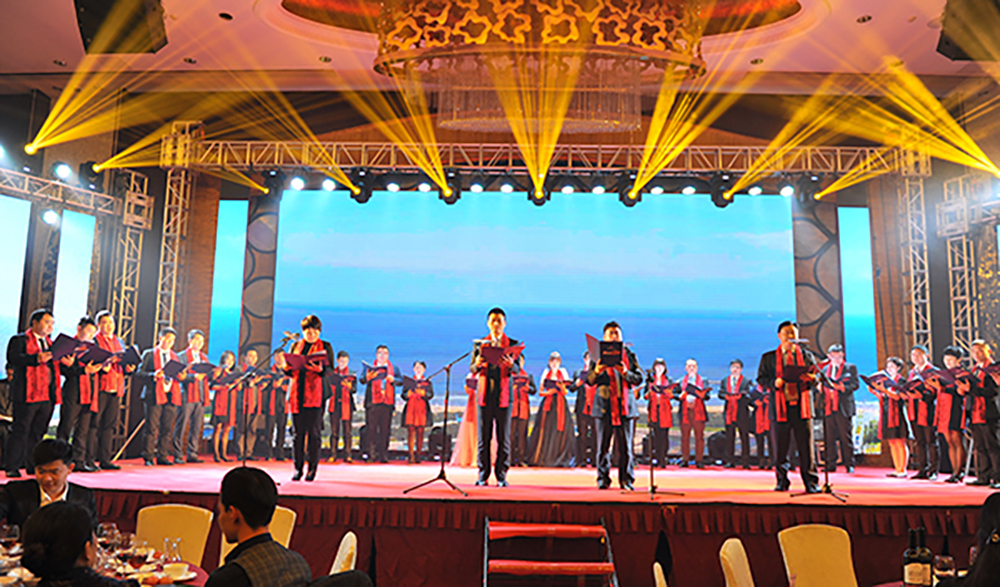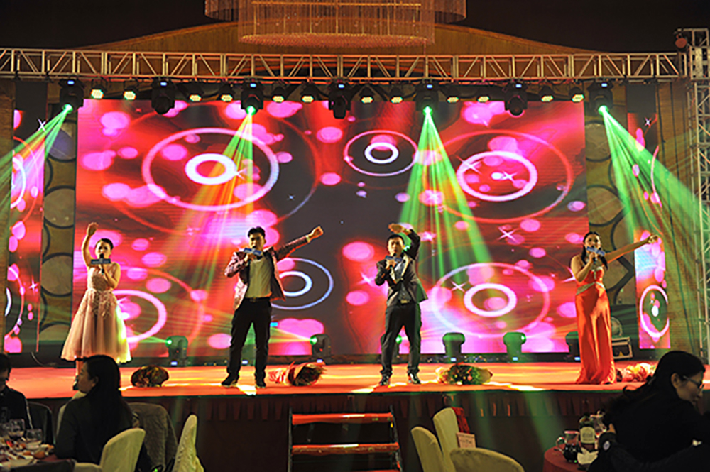 酷炫的舞臺(tái)燈光,微醺的年會(huì)現(xiàn)場