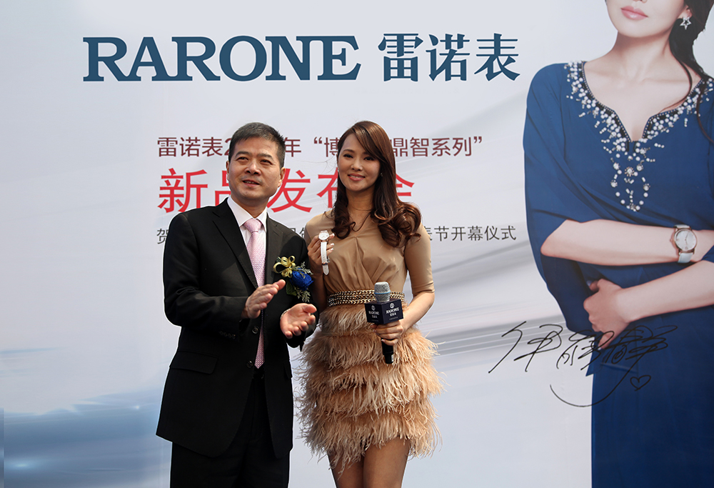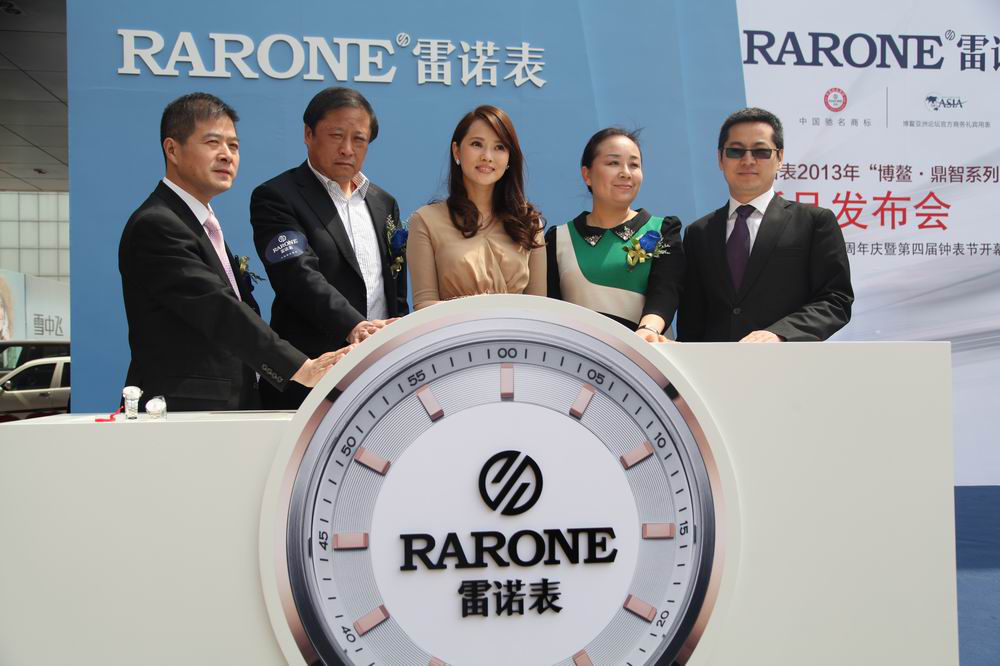 左起:雷諾表業(yè)總經(jīng)理詹江洲先生;唐百大集團(tuán)董事、總裁王維柯先生、副總裁孟瑞軍女士;雷諾表業(yè)營(yíng)銷總監(jiān)程兵先生與伊能靜一起為新品上市揭幕